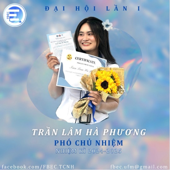 | Họ và tên: Trần Lâm Hà Phương Chức vụ: Sinh viên khoa TC-NH Chức danh trong Ban điều hành: Phó chủ nhiệm |