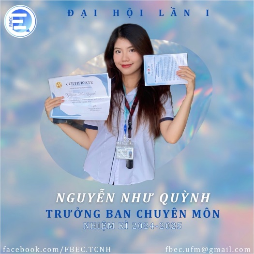 | Họ và tên: Nguyễn Như Quỳnh Chức vụ: Sinh viên khoa TC-NH Chức danh trong Ban điều hành: Trưởng Ban Chuyên môn |