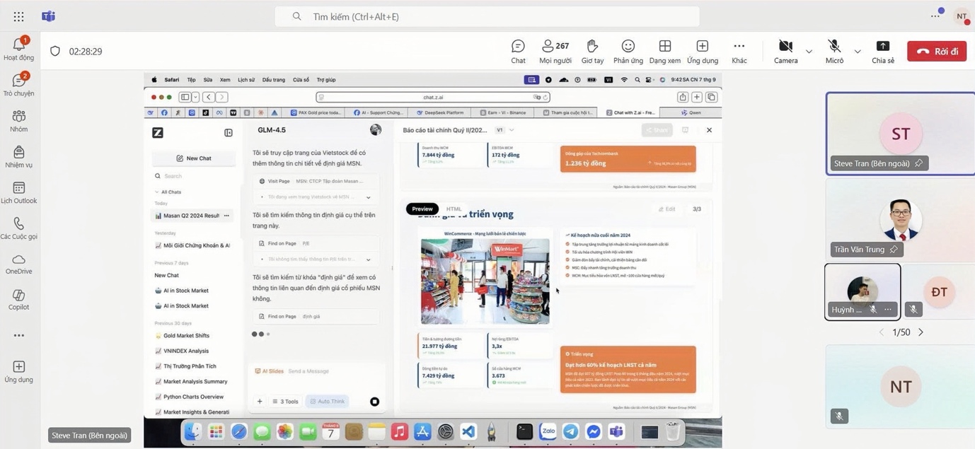 Hình 4: Giao diện GLM-4.5 ứng dụng AI phân tích báo cáo tài chính và triển vọng doanh nghiệp.