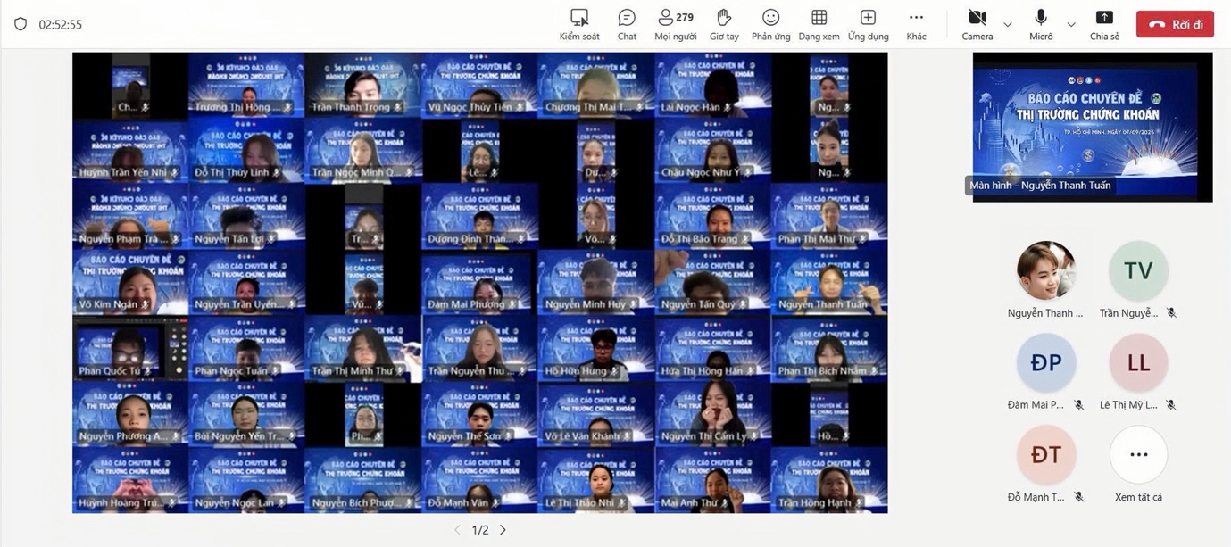 Nhằm trang bị cho sinh viên nền tảng kiến thức hiện đại, cập nhật xu thế công nghệ và định hướng nghề nghiệp phù hợp với yêu cầu của kỷ nguyên số. Vào lúc 8:00 sáng, ngày 7/9/2025 Viện Công nghệ Tài chính ngân hàng tổ chức buổi báo cáo chuyên đề về Thị trường chứng khoán với chủ đề: “Cách mạng AI và tương lai ngành chứng khoán”
