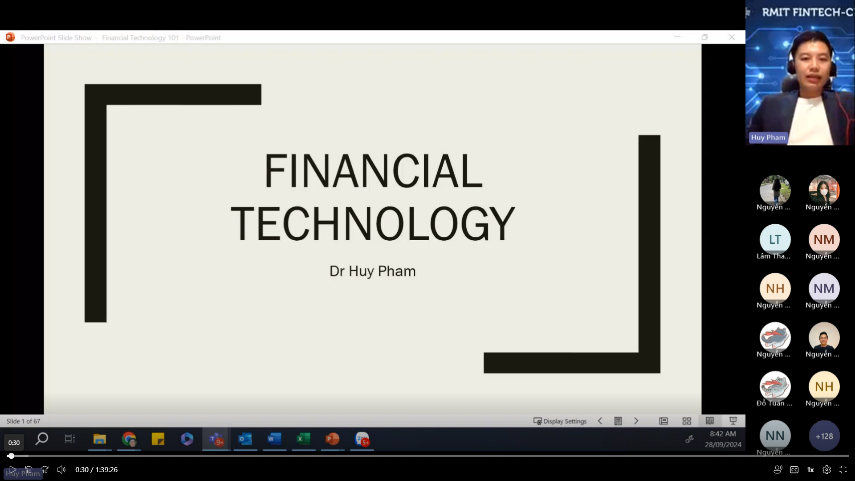 Được sự đồng ý của Ban Giám hiệu nhà trường, sáng thứ bảy ngày 28/9/2024, Khoa Tài chính – Ngân hàng tổ chức buổi nói chuyện chuyên đề "Fintech và các ứng dụng trong lĩnh vực Tài chính - Ngân hàng" online trên nền tảng MS TEAMS. Buổi báo cáo với sự có mặt của Diễn giả TS. Phạm Nguyễn Anh Huy đến từ Trường Đại học RMIT cùng với gần 300 sinh viên và các giảng viên Khoa Tài chính – Ngân hàng.