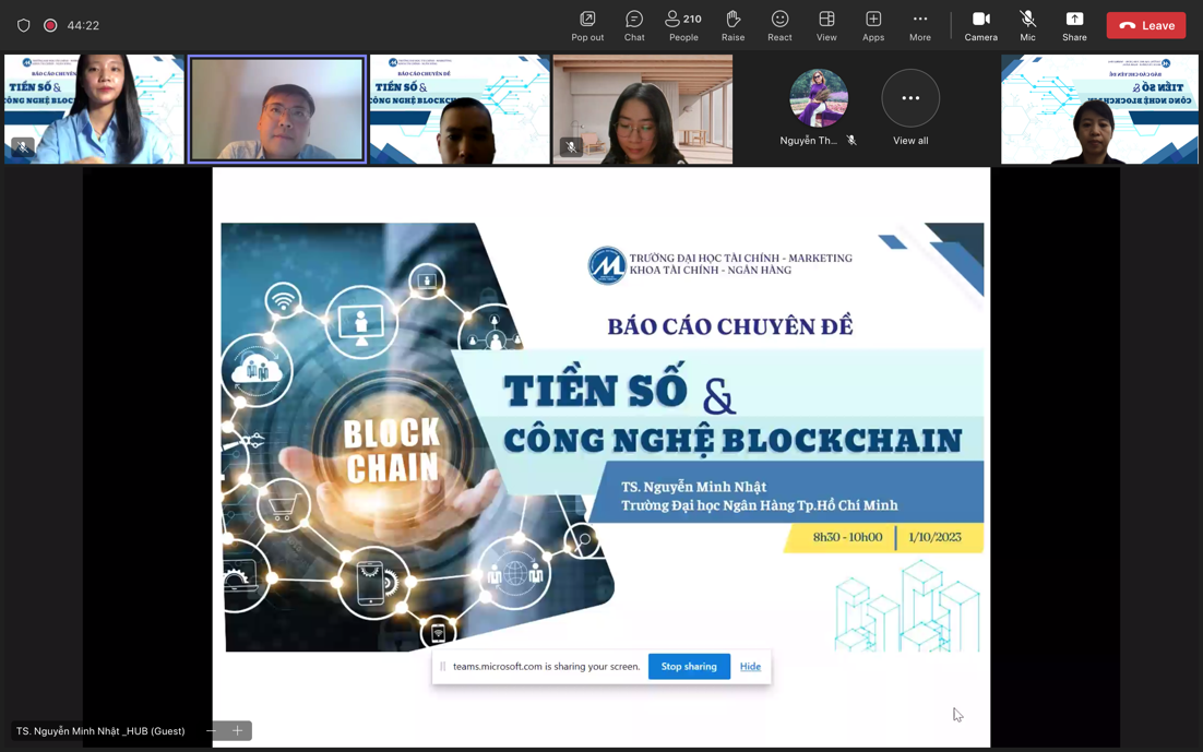 Diễn giả trình bày báo cáo chuyên đề là TS. Nguyễn Minh Nhật đang công tác tại Trường Đại học Ngân hàng TP. Hồ Chí Minh – vừa là giảng viên vừa là chuyên gia trong lĩnh vực Tiền số và Blockchain.