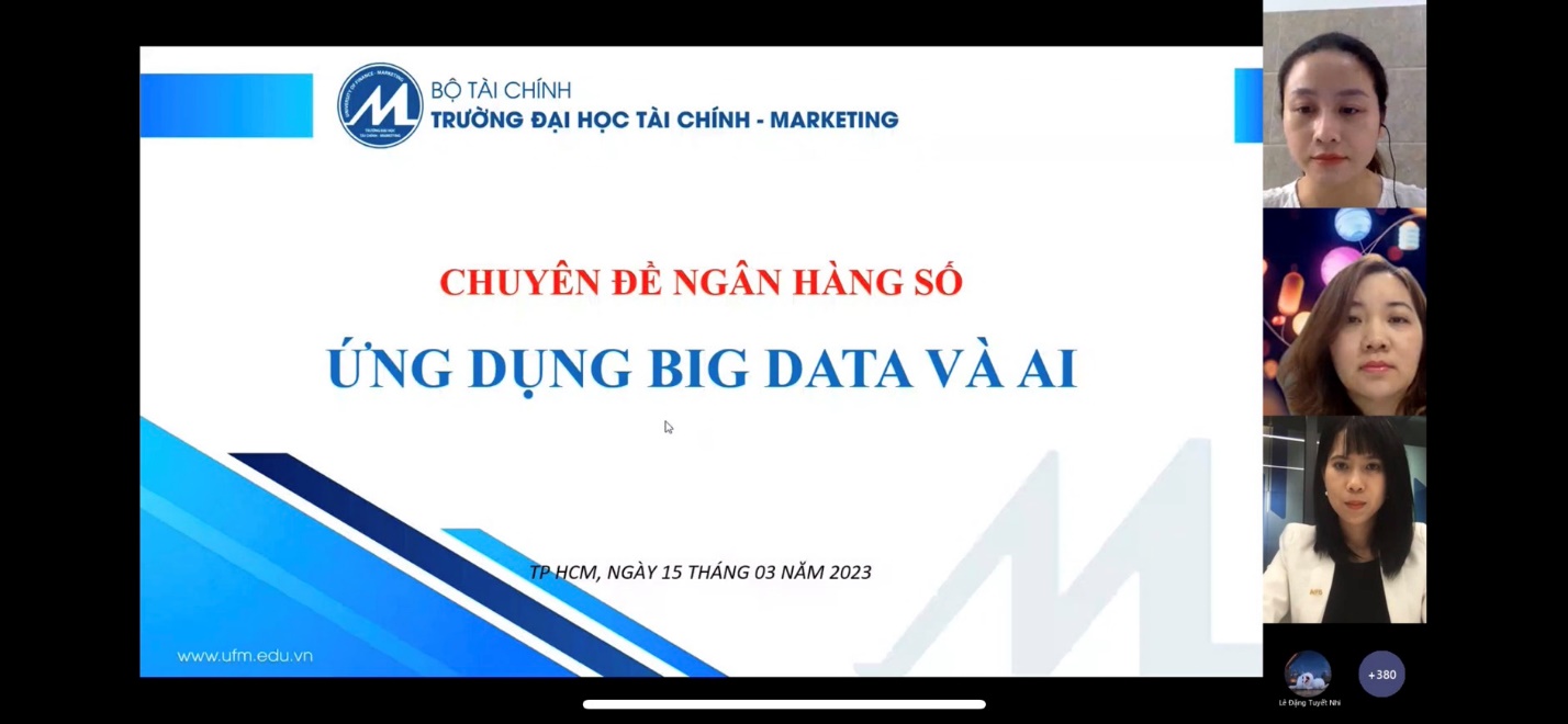 Với sự phát triển nhanh chóng của khoa học công nghệ, trong những năm gần đây, trí tuệ nhân tạo (AI) và dữ liệu lớn (big data) đang dần được ứng dụng trong nhiều lĩnh vực khác nhau như chăm sóc sức khỏe, kinh doanh, giáo dục, sản xuất, tài chính… và ngân hàng không nằm ngoài xu hướng ấy. Với các ngân hàng thì đây được coi như nhiệm vụ, chiến lược giúp các tổ chức này thúc đẩy hoạt động kinh doanh và quản lý rủi ro hiệu quả. Thay vì xử lý công việc theo phương pháp truyền thống như trước đây thì bây giờ ngân hàng có thể sử dụng công nghệ để giải quyết các tác vụ nhanh chóng với độ chính xác cao. Nhằm mục tiêu trang bị cho Sinh viên những kiến thức thực tế về hoạt động của ngân hàng thương mại trong thời kỳ chuyển đổi số, ngày 15 tháng 3 năm 2023 vừa qua, Khoa Tài chính – Ngân hàng trường Đại học Tài chính – Marketing đã tổ chức buổi báo cáo chuyên đề “Ứng dụng Big data và AI trong ngân hàng số”.