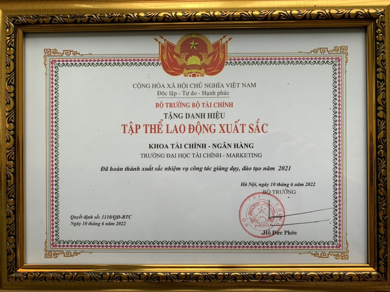 Bộ Tài Chính khen thưởng tập thể lao động xuất sắc nhiệm vụ công tác giảng dạy, đào tạo năm 2021
