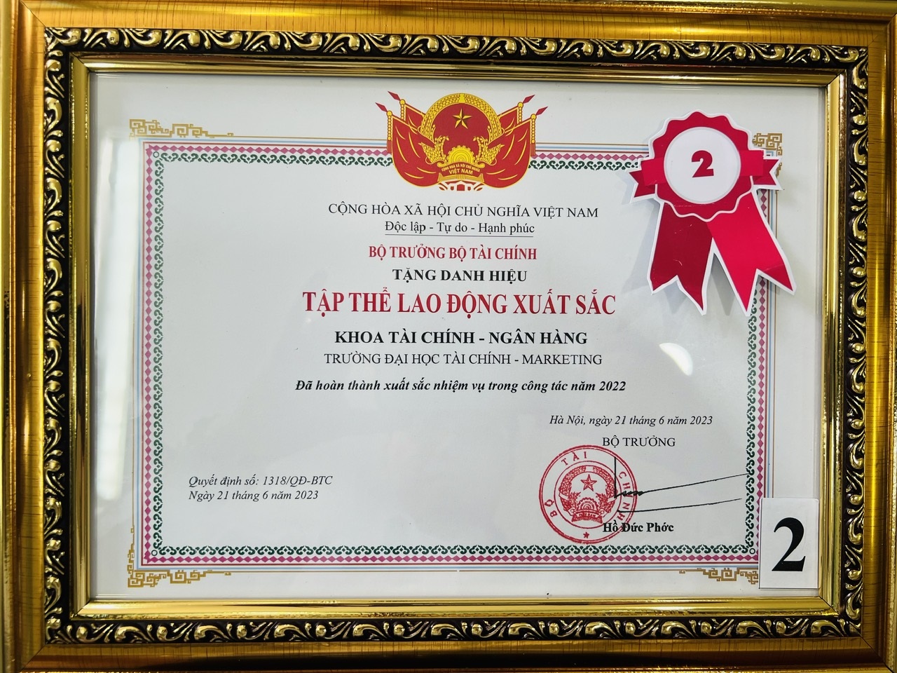 Bộ Tài Chính tặng danh hiệu tập thể lao động xuất sắc cho tập thể Khoa TCNH 2022