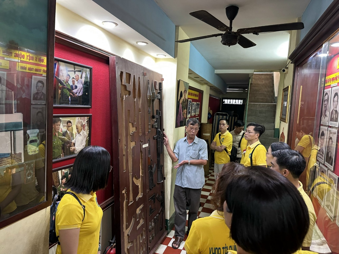 Chi bộ Khoa Tài chính – Ngân hàng được đồng chí Nguyễn Hữu Phúc – Chủ tịch Hội cựu chiến binh Phường 5 Quận 3, TP.HCM trực tiếp giới thiệu về quá trình hình thành và trở thành cơ sở bí mật của lực lượng biệt động Sài Gòn, giới thiệu hiện vật trưng bày tại Di tích lịch sử Quốc gia.