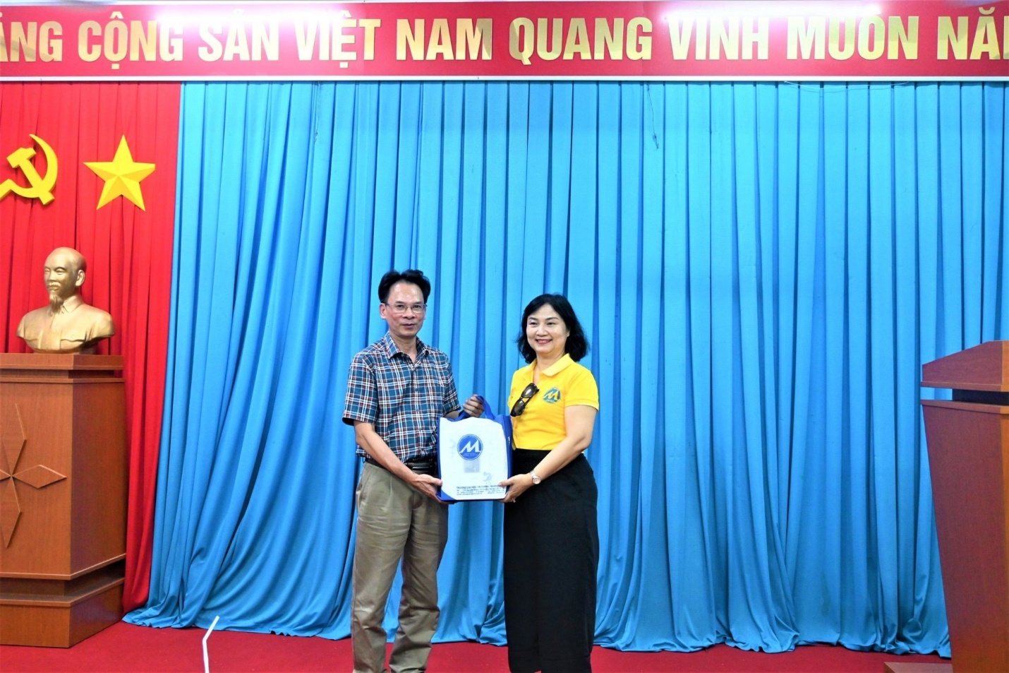 Bí thư chi bộ tặng quà lưu niệm cho ông Nguyễn Văn Lem – PGĐ cơ quan BHXH huyện