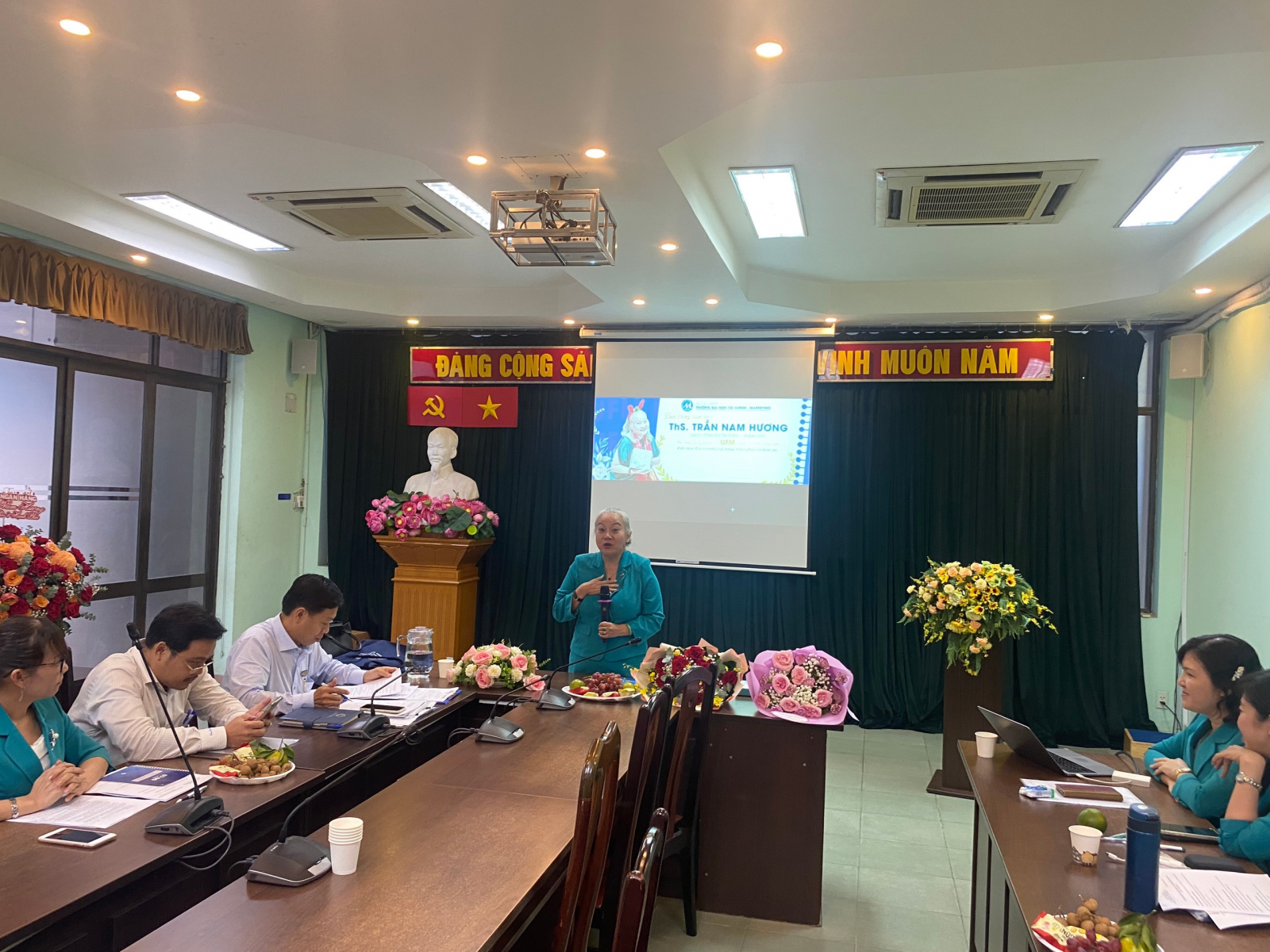 Trải qua hơn 30 năm công tác trong ngành Giáo dục, Cô Trần Nam Hương có nhiều đóng góp cho sự nghiệp giáo dục và đào tạo của trường, tham gia đào tạo được nhiều thế hệ sinh viên. Cô đã cùng với cán bộ, giảng viên UFM thực hiện tốt công tác giảng dạy. Phát biểu tại Hội nghị, đại diện lãnh đạo Nhà trường, TS. Lê Trung Đạo, Phó hiệu trưởng nhà trường đã gửi lời chúc Ths. Trần Nam Hương nghỉ hưu theo chế độ có nhiều sức khoẻ, hạnh phúc, tiếp tục quan tâm, gắn bó, đóng góp tâm lực, trí lực đối với sự nghiệp giáo dục, đào tạo của Nhà trường, góp phần xây dựng thương hiệu UFM ngày càng phát triển.