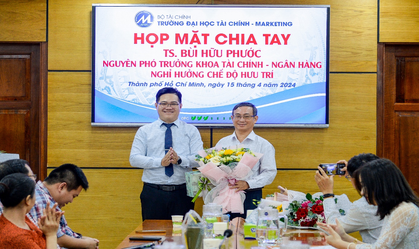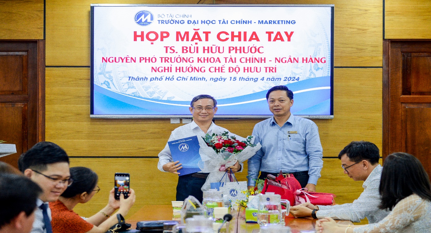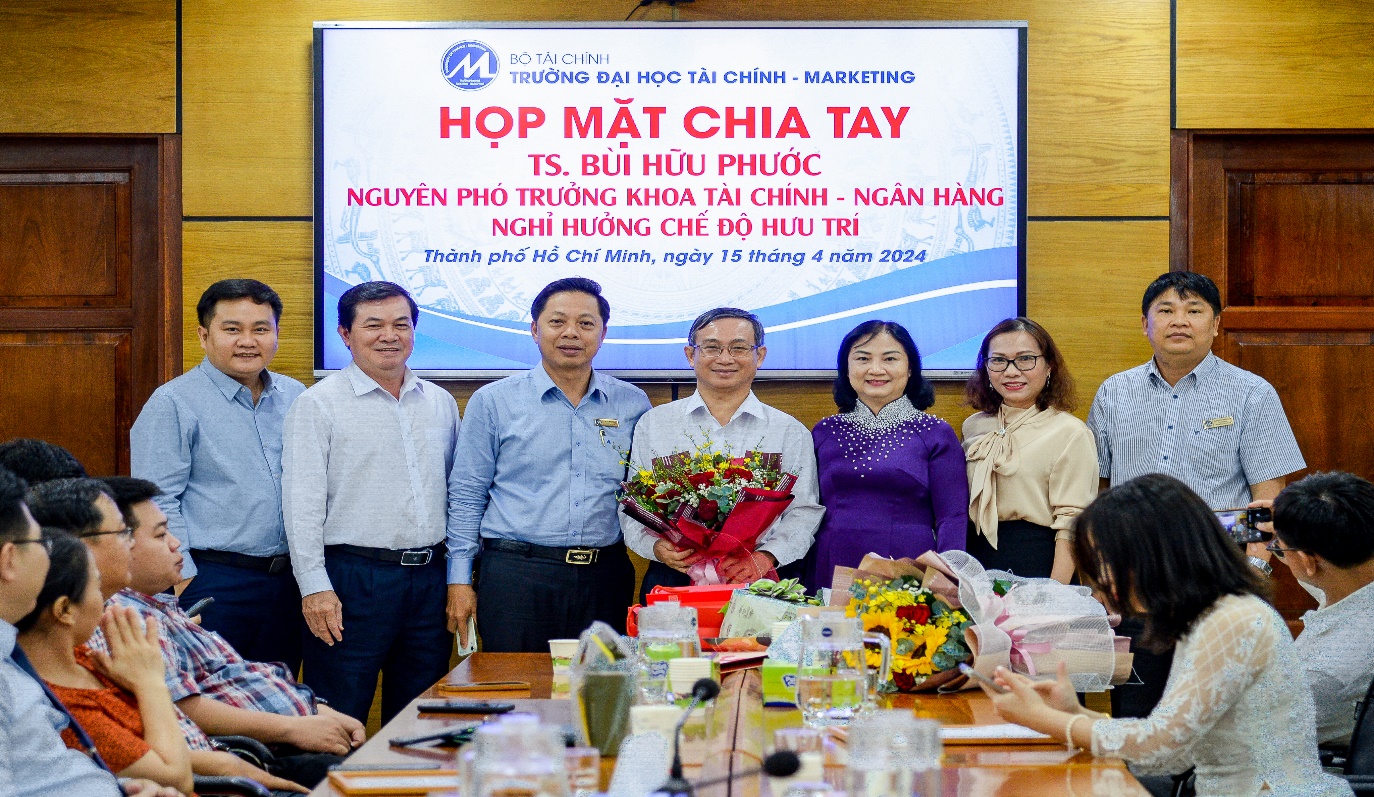 Sáng ngày 15/4/2024, trong không khí đầm ấm, trang trọng, thân tình, Khoa Tài chính – Ngân hàng (TCNH), Trường Đại học Tài chính – Marketing (UFM) đã tổ chức Hội nghị công bố quyết định nghỉ hưu để hưởng chế độ BHXH đối với TS. Bùi Hữu Phước, nguyên Phó Khoa TCNH sau nhiều năm công tác tại Trường.
