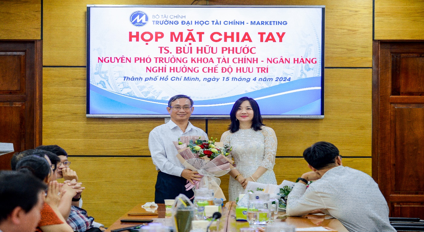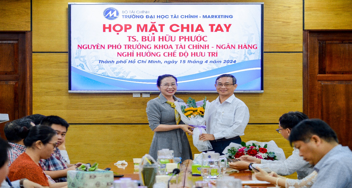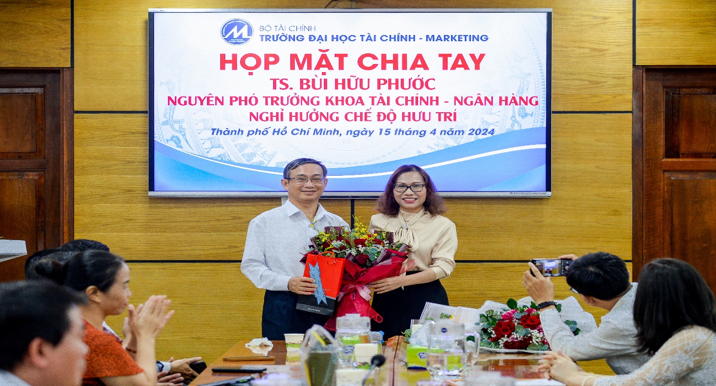 Sáng ngày 15/4/2024, trong không khí đầm ấm, trang trọng, thân tình, Khoa Tài chính – Ngân hàng (TCNH), Trường Đại học Tài chính – Marketing (UFM) đã tổ chức Hội nghị công bố quyết định nghỉ hưu để hưởng chế độ BHXH đối với TS. Bùi Hữu Phước, nguyên Phó Khoa TCNH sau nhiều năm công tác tại Trường.