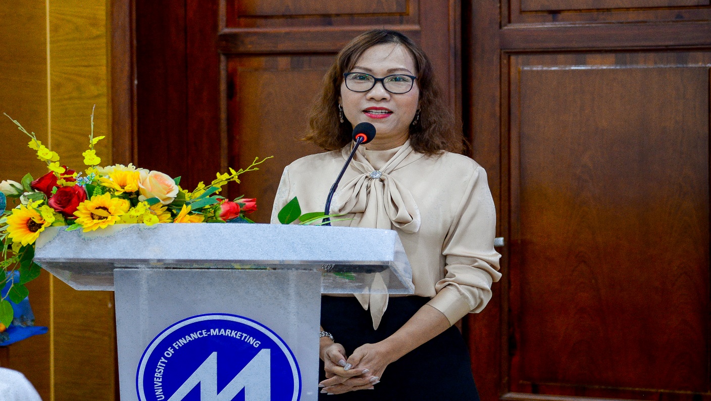 PGS. TS. Nguyễn Thị Mỹ Linh, Trưởng khoa Khoa Tài chính – Ngân hàng phát biểu tại buổi Lễ