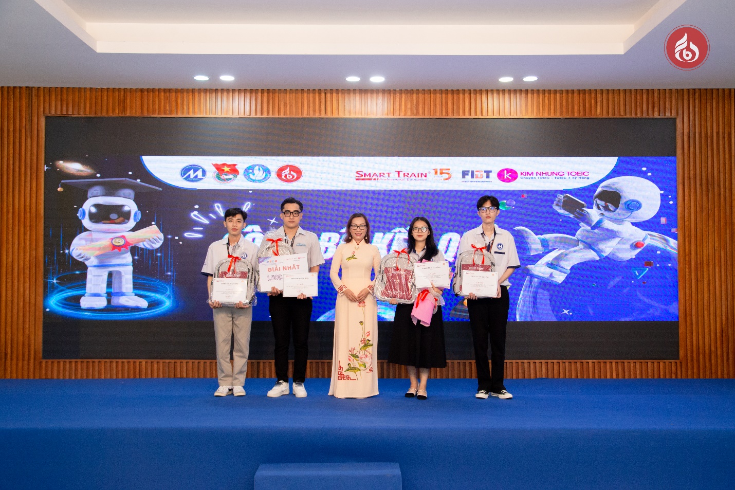 Hình 6: Ông Nguyễn An Huy – Đại diện cho Công ty TMCP FIDT trao học bổng cho các đội thi đạt giải