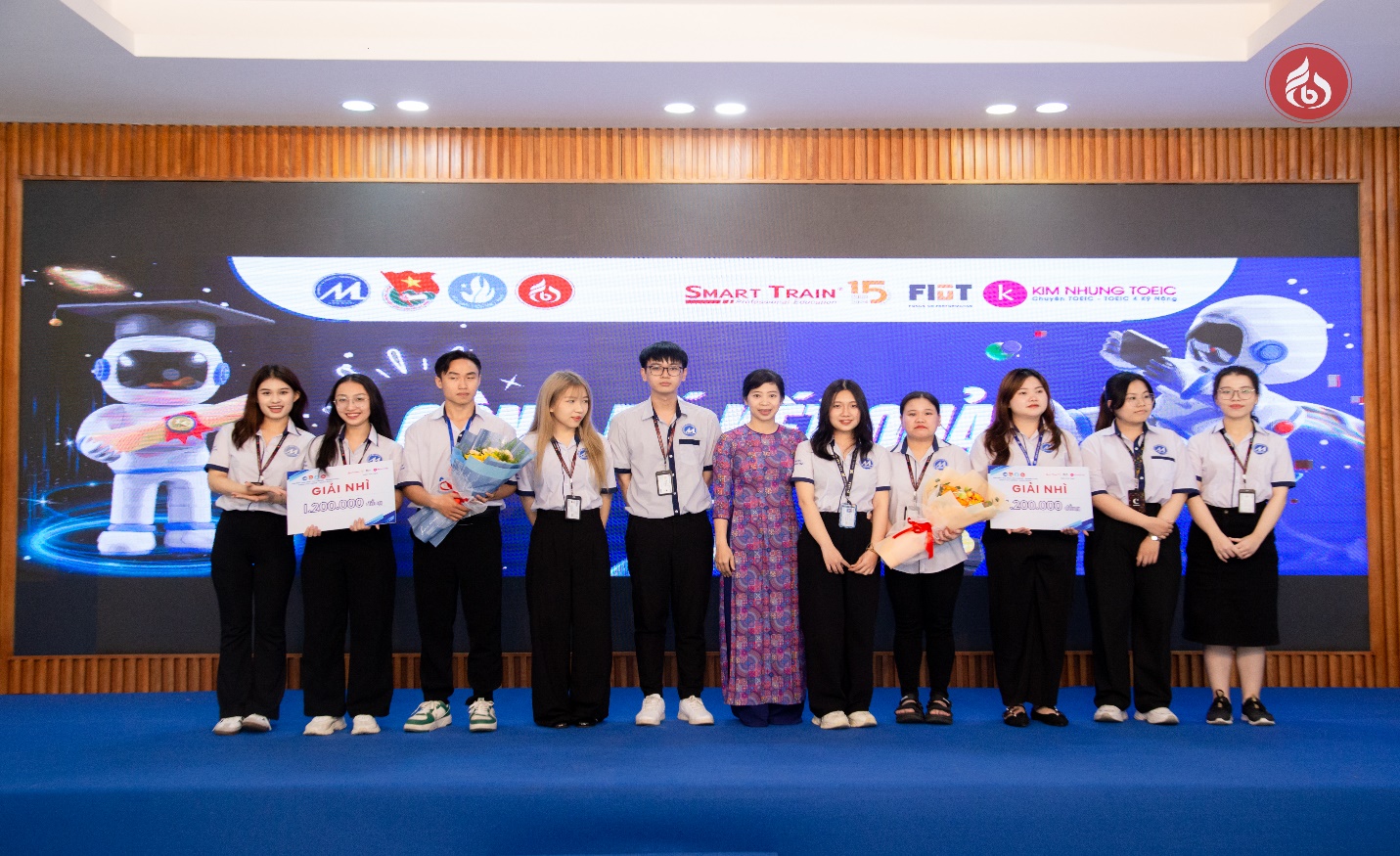 Hình 8: PGS.TS. Nguyễn Thị Mỹ Linh – Trưởng Khoa TCNH – Trao học bổng của Công ty TNHH Smart Train cho các đội đạt giải