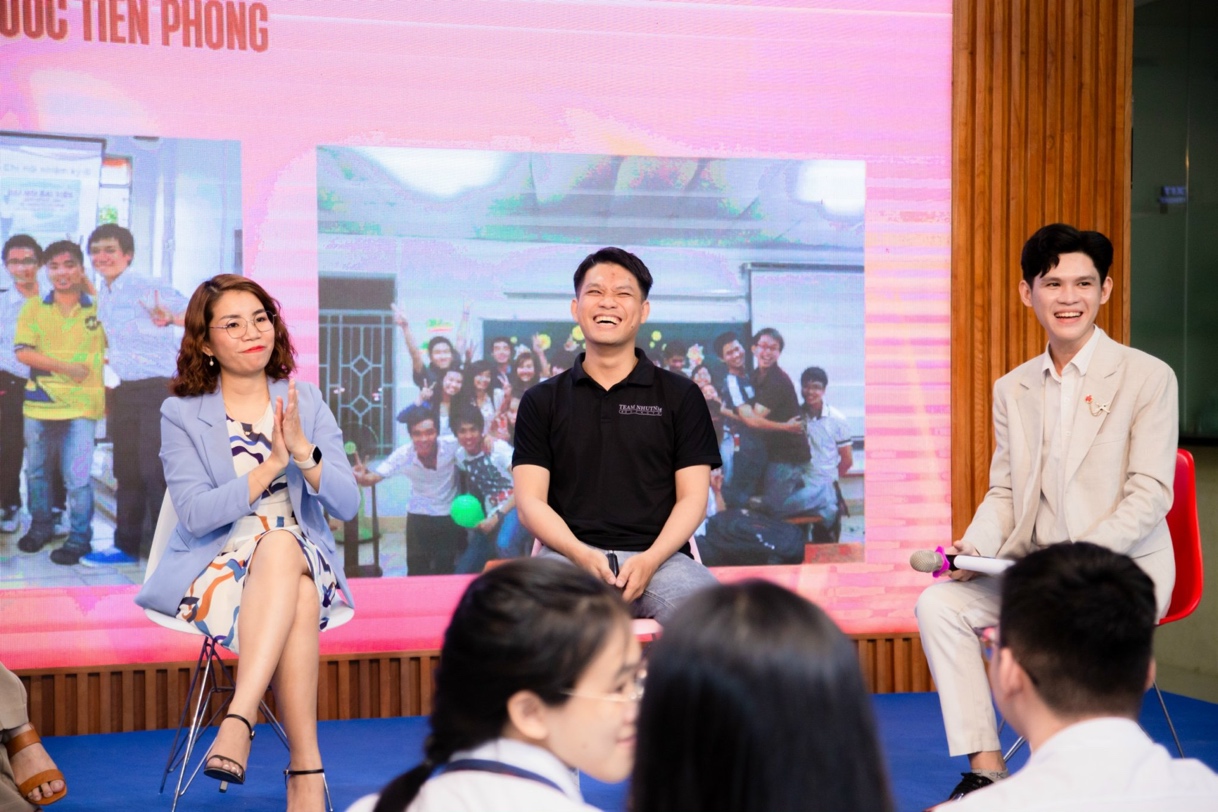 Hình 4: Anh Ngô Minh Nhựt chia sẻ kinh nghiệm sắp xếp thời gian và kết nối các nhóm hoạt động.