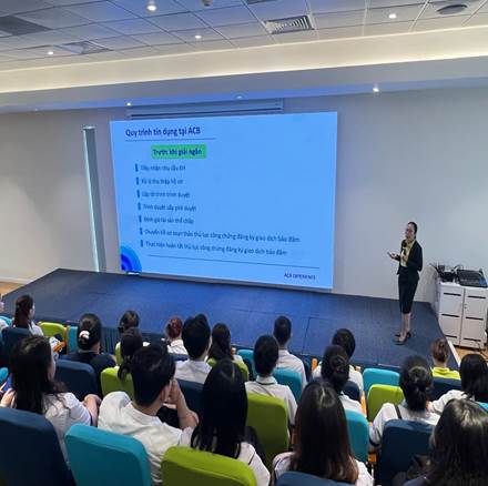 Sinh viên giao lưu với cán bộ ngân hàng, tại Ngân hàng ACB