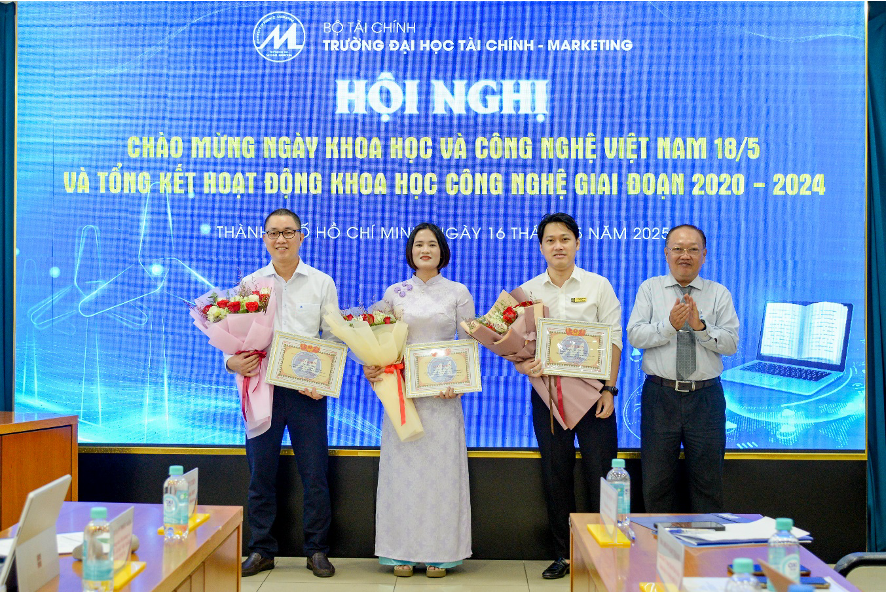 Hoạt động khoa học và công nghệ (KH&CN) luôn đóng vai trò quan trọng trong công tác đào tạo tại các cơ sở giáo dục đại học. Sáng ngày 16/05/2025, Trường Đại học Tài chính – Marketing đã tổ chức Hội nghị“Tổng kết hoạt động khoa học công nghệ giai đoạn 2020-2024” tại phòng A.302, cơ sở Quận 7. Sự kiện đã nhận được sự góp mặt của đông đảo các chuyên gia, nhà nghiên cứu khoa học trong và ngoài Trường. Đây là hoạt động kỷ niệm ngày Khoa học và Công nghệ (KH&CN) Việt Nam 18/5, đánh giá tình hình thực hiện nhiệm vụ KH&CN, đồng thời là dịp để ghi nhận, tôn vinh các cá nhân, tập thể có kết quả nổi bật và Khoa Tài chính – Ngân hàng đã đạt được nhiều thành tích xuất sắc trong hoạt động KH&CN giai đoạn 2020-2024 của Trường.