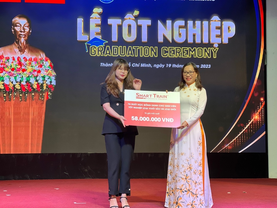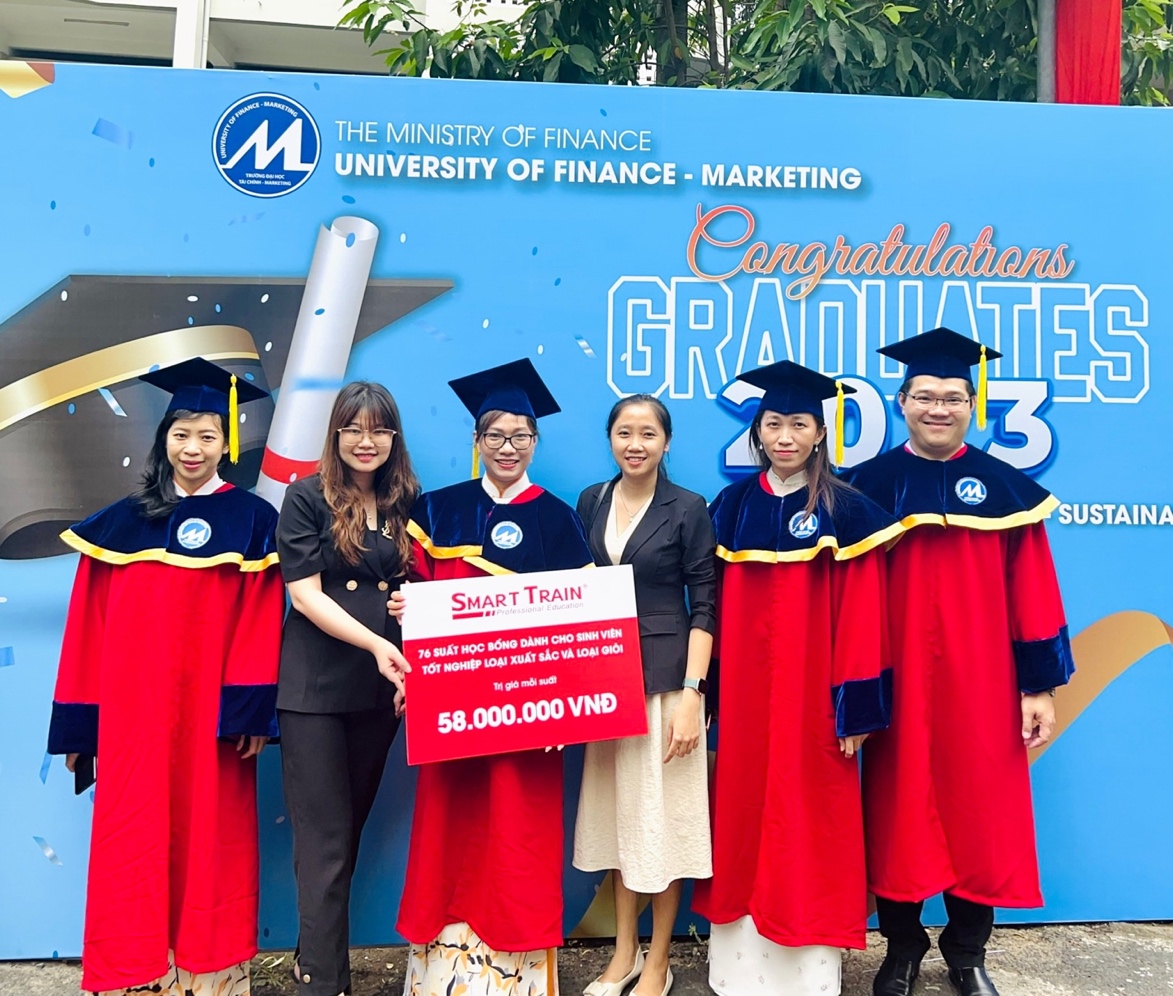 Đặc biệt trong đợt tốt nghiệp này, Khoa Tài chính Ngân hàng rất hân hạnh nhận được sự tài trợ học bổng từ SMART TRAIN PROFESSIONAL EDUCATION với 76 suất học bổng cho sinh viên tốt nghiệp loại giỏi và xuất sắc mỗi suất trị giá 58 triệu đồng.