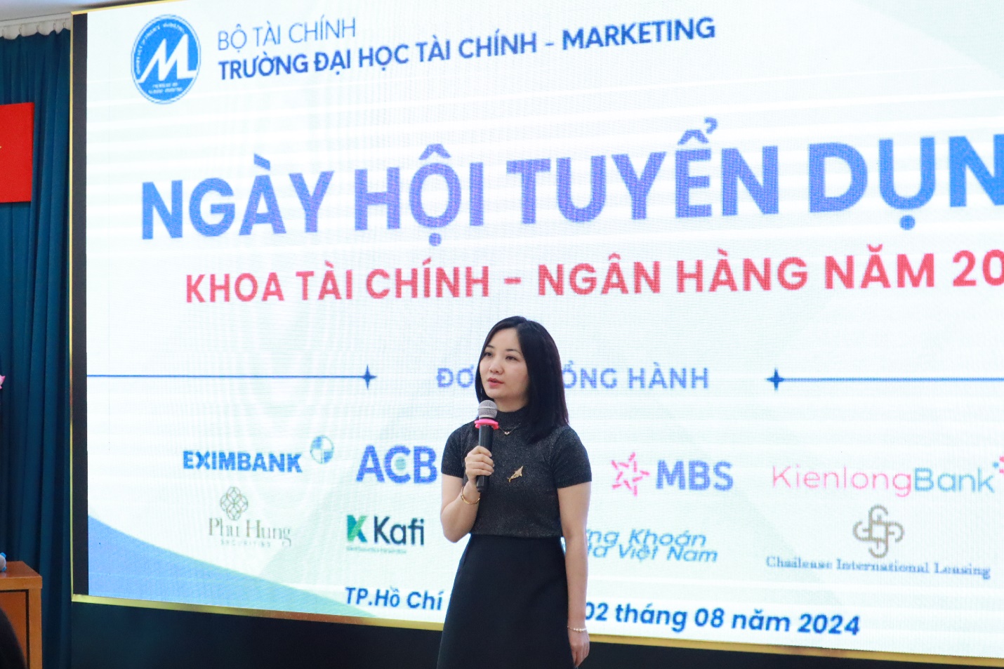Ngày 02 tháng 08 năm 2024 vừa qua, Khoa Tài chính – Ngân hàng (TCNH), Trường đại học Tài chính – Marketing tổ chức “Ngày hội tuyển dụng - Lần thứ 2, 2024”, nhằm tạo điều kiện, kết nối cho sinh viên có cơ hội tìm kiếm việc làm và thực tập tốt nghiệp tại các đơn vị có uy tín tại Tp.Hồ Chí Minh và các địa phương, cũng như góp phần tăng thêm sự liên kết, hợp tác chặt chẽ giữa Khoa Tài chính - Ngân hàng và các doanh nghiệp.