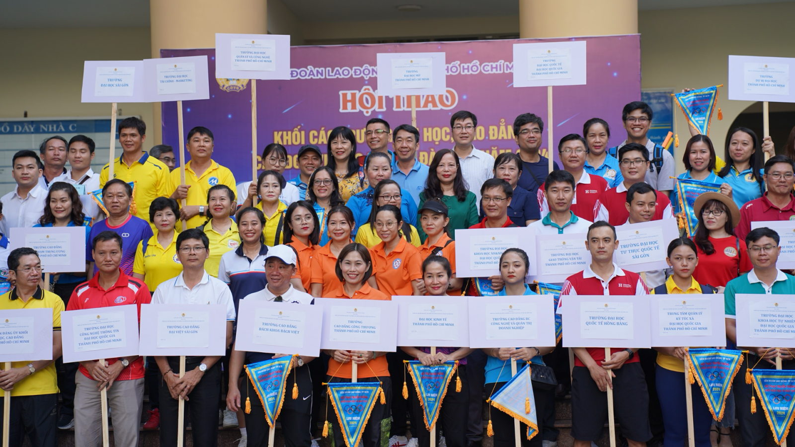 cho CĐV, NLĐ tham gia Hội thao Khối các Trường Đại học, Cao đẳng và các đơn vị Giáo dục - Đào tạo Tp.HCM năm 2024 với đầy đủ các môn thi đấu: