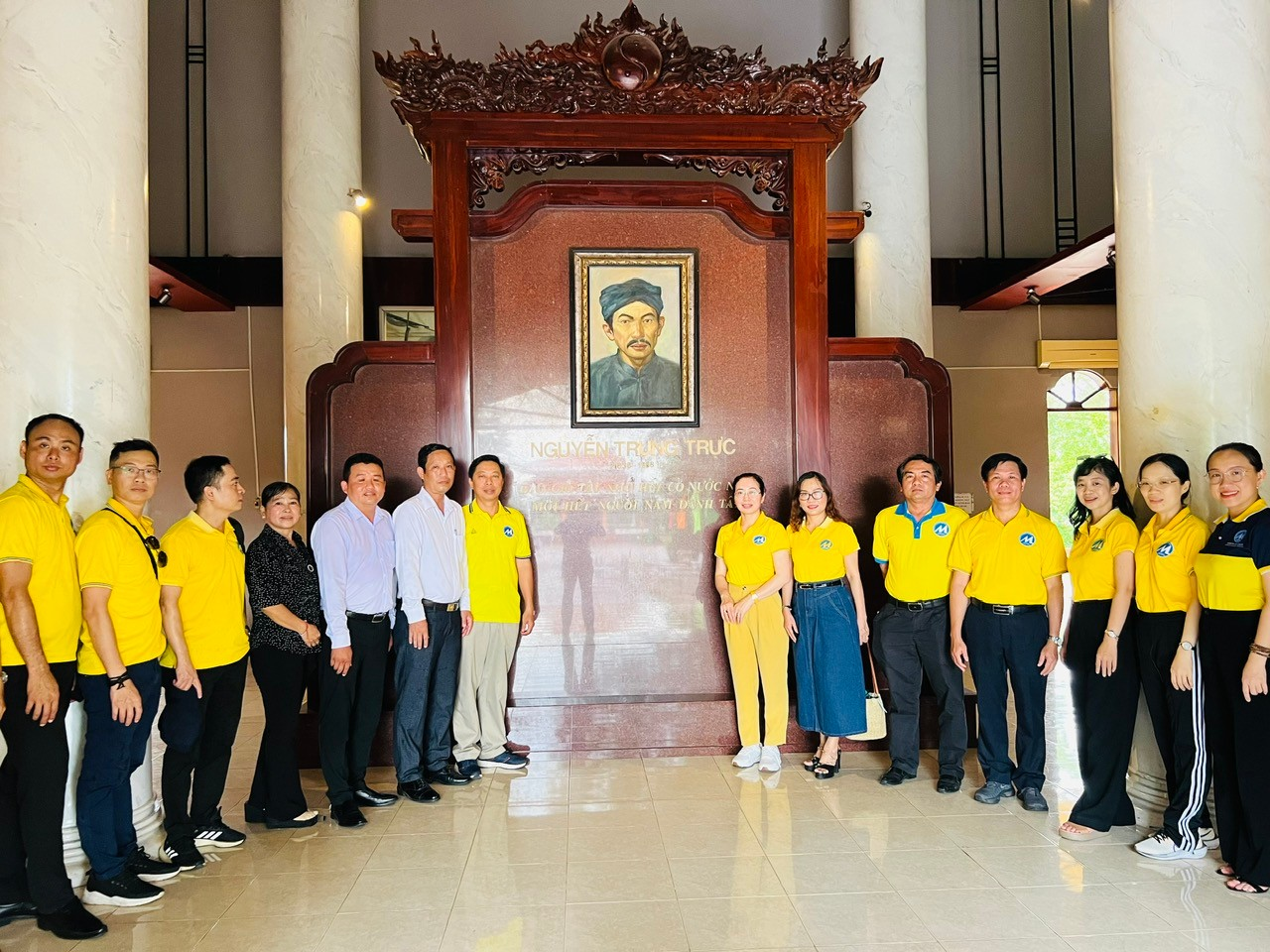 Tập thể đảng viên và đại diện Ủy ban nhân dân xã Tân Bình,chụp ảnh lưu niệm trước di ảnh Anh hùng Nguyễn Trung Trực