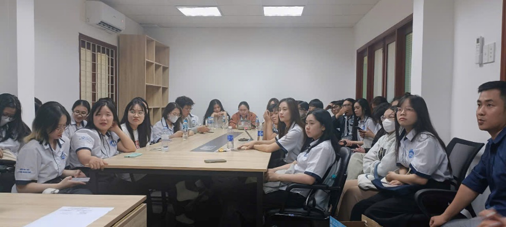 Hình 4. Sinh viên chăm chú lắng nghe đại diện công ty trình bày về quy trình làm việc tại công ty bảo hiểm Hàng không