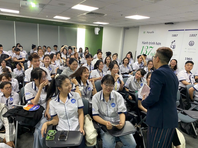 Hình 5. Đại diện doanh nghiệp trao đổi và giao lưu với sinh viên tại công ty bảo hiểm Manulife