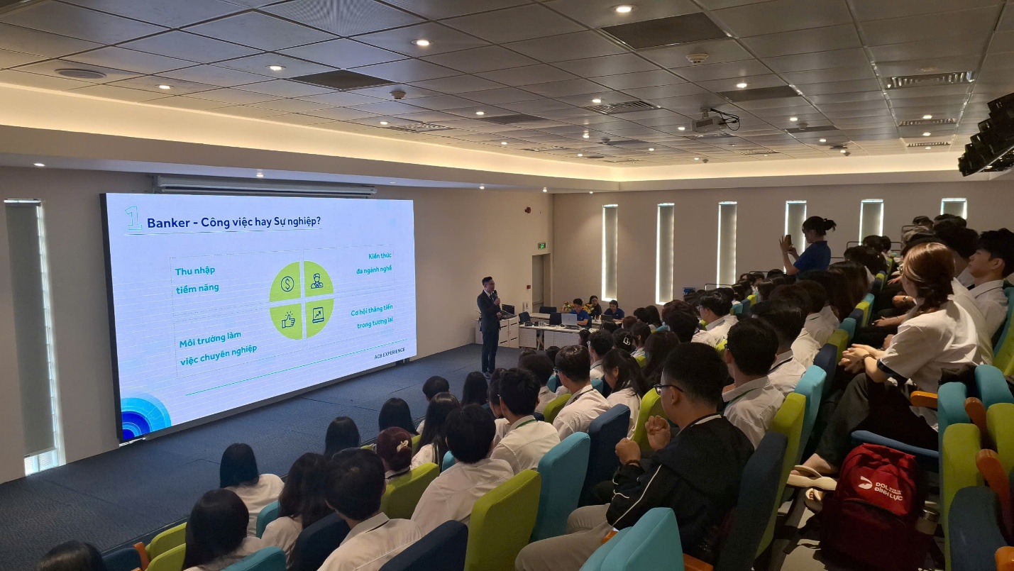 Các chuyên gia từ ACB, Shinhanbank và nhiều ngân hàng khác đã trực tiếp hướng dẫn sinh viên, mang lại những bài học quý báu về dịch vụ khách hàng, kỹ năng giao dịch tài chính và văn hóa làm việc chuyên nghiệp. Ngoài ra, các hoạt động trải nghiệm như tham quan phòng giao dịch, thực hành sản phẩm và dịch vụ ngân hàng, cùng các trò chơi mô phỏng nghiệp vụ đã giúp sinh viên nắm bắt sâu sắc hơn về hoạt động ngành nghề.