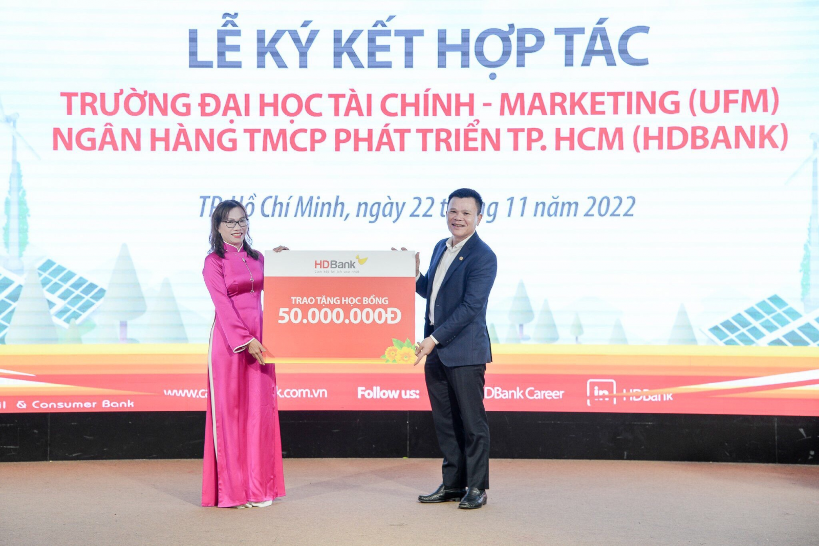 Đến với Lễ ký kết hợp tác này, HDBank cũng mong muốn được đồng hành hỗ trợ học bổng cho sinh viên Khoa Tài chính – Ngân hàng nhằm tiếp thêm nguồn lực để sinh viên có thể hoàn thành ước mơ của mình tại UFM với trị giá học bổng là 50.000.000 đồng.