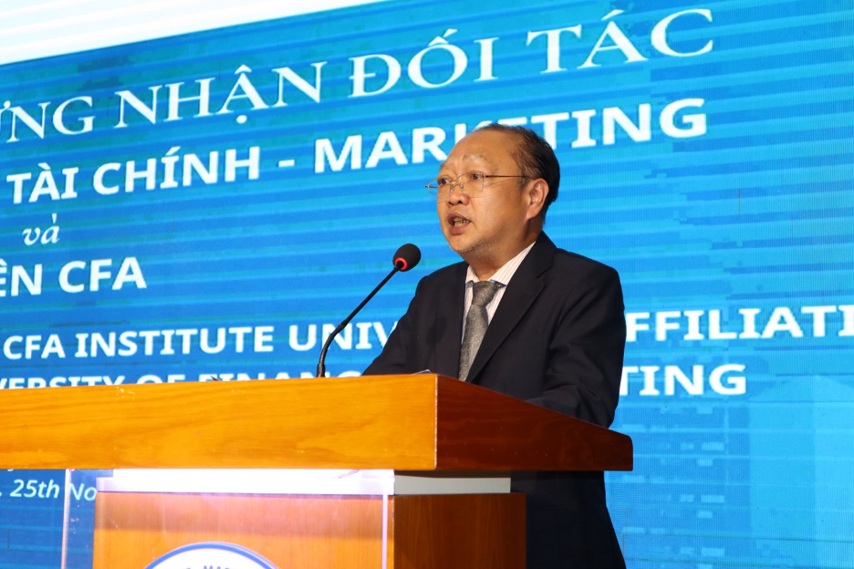 PGS.TS. Phạm Quốc Việt, Phó Hiệu trưởng Trường Đại học Tài chính - Marketing, phát biểu tại buổi Lễ